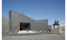 水洞溝遺址博物館建筑面積4308平方米,外形仿水洞溝出土的石器,是我國西北地區唯一展示舊石器時代文化面貌的主題博物館。它在傳統博物館參觀性功能的基礎上融入藝術性、文學性和高科技的創新元素。以270度超大型半景畫、實景、幻影成像等展示形式,結合世界最先進的聲、光、電、可調式地震平臺等技術的運用。