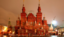 俄羅斯國家歷史博物館(The State Historical Museum)位于俄羅斯莫斯科紅場北側的馬涅什廣場上,是一座建筑造型非常美麗且極具新俄羅斯風格的朱紅色建筑物;在主體建筑物的兩側各有一座高聳對稱的塔樓,還有裝飾性的尖塔、三角檐與圓拱型窗戶。