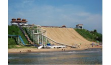 國際滑沙娛樂中心,位于黃金海岸的中部。5000多公頃蒼翠的林帶襯托著連綿40多公里的沙丘,與大海奇妙地組合在一起,構成一幅神奇自然的海洋大漠風光?;硤龅拈_發面積為10平方公里。一道道并列的沙山,一直延伸到海灘。這些沙山,高20-40米,陡緩起伏。乘坐索道纜車,還可以瀏覽一望無垠的沙海,觀賞黃金海岸獨有的沙漠風光。