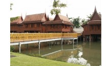 行宮內全部采用柚木所建成的,大片綠色草坪上的柚木行宮,建筑風格很明顯受到歐洲的影響,但基本是還是根據泰國的傳說來興建的。它使用了金色的柚木,卻沒有一根釘子在上面。柚木里有特別的油脂,而使得它能抗熱和大雨,再加上這種油脂本身還有驅去蟲的功能,更使它成為價值不斐的建筑良材。