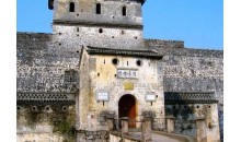 雙峰寨位于廣東省仁化縣城西19公里的石塘鎮石塘村,距廣東著名的丹霞山僅23公里,省道橫貫全鎮,交通十分方便。該寨是鄉紳李自勝為防范土匪搶掠,籌銀三萬,于清光緒二十五年(1899年)動工,至庚戍年告竣(公元1915年),用了十六年的時間建成,至今已有100多年歷史。連護城河在內,總占地面積為11300平方米。雙峰寨原名石塘寨,后取寨門前門楣橫匾“雙峰保障”之意,改稱為“雙峰寨”至今,該寨1949年前已崩塌,中華人民共和國成立后重修。