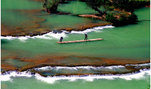 羅平多依河位于羅平縣城東南40公里,經十萬大山峰叢至多依寨子進入景區(qū)。景區(qū)從多依寨至“雞嗚三省”的三江口,全長12公里的河床上有近40個瀑布,兩岸古木修竹,色彩豐富,層次清晰。河水常年晶瑩剔透,蔚藍無邊。尤其是沿河兩岸盤根錯節(jié)的干年古樹,仿佛就是一座龐大的自然根雕藝術展覽館。河道蜿蜒曲折,布依村寨沿河而布,吊腳樓隱現(xiàn)樹叢竹林之間,一派十足的熱帶風光畫面。一水合三江、清江一邊淌、渾水一邊流的奇觀異景就在此顯現(xiàn)。