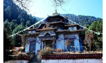 布久喇嘛林寺依山傍水,佛殿庭院掩映綠蔭之中,院內藏犬成群。整個寺院形狀內呈正四角,外底層屋檐共有二十角,第二到第三層屋檐為八角,佛殿高20余米,內徑10余米,上覆金頂,呈塔形,四面墻體分以白蘭紅綠四色涂之,非常漂亮。喇嘛林寺有著名的蓮花生大師踐石遺跡,寺內精美的壁畫也堪稱藏東一絕。布久喇嘛林寺屬紅教,是林芝地區(qū)最大最重要的藏傳佛教場所。
