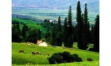金絲特避暑山莊,位于新疆庫爾勒市和碩縣北紅山地帶那音克鄉的一個水草豐美的山間小盆地里。沿著崎嶇的山路前40公里左右,就可到達。這里草地如毯、牛羊成群、喇嘛調悠揚深遠;揚鞭縱馬,如入人間仙境。在這里,游人還可以盡情地感受到和碩特蒙古人古樸而濃烈的風情。一年一度的那達慕盛會更是熱鬧非凡,有醇香的奶酒、鮮美的手抓肉,還有古老悠揚的沙吾爾登彈唱,夏日有日吾爾賓館接待游人。
